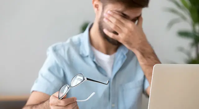 - الصداع البصري: وهو نوع من الصداع يبدأ في منطقة العينين بسبب التوتر وإجهاد العضلات المحيطة بهما.